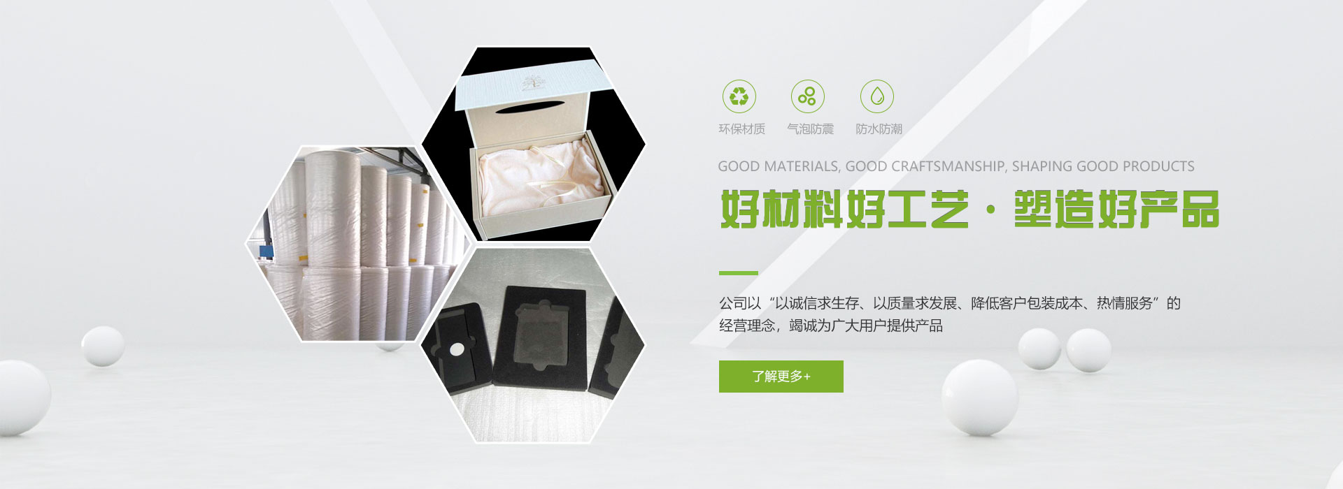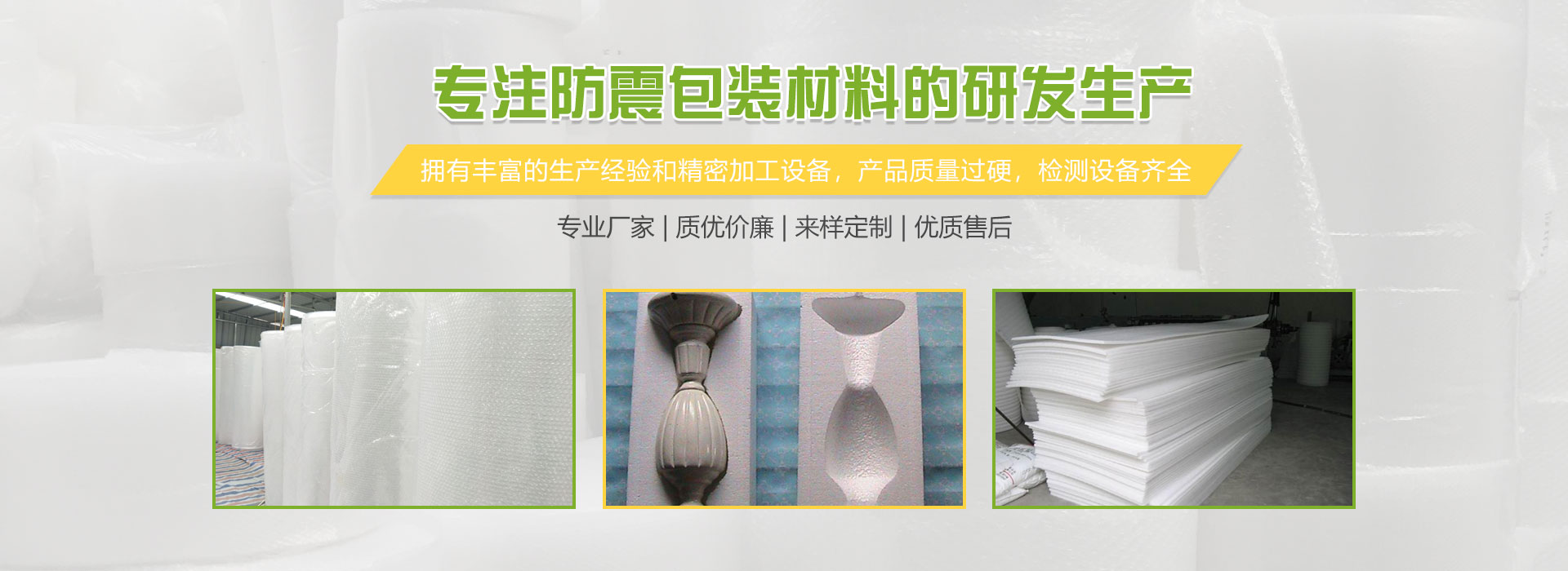 主营产品:气泡膜、气垫膜、EPS保丽龙泡沫、EPE珍珠棉、海绵、EVA、珍珠棉袋、气泡袋礼盒内衬等防震包装材料
